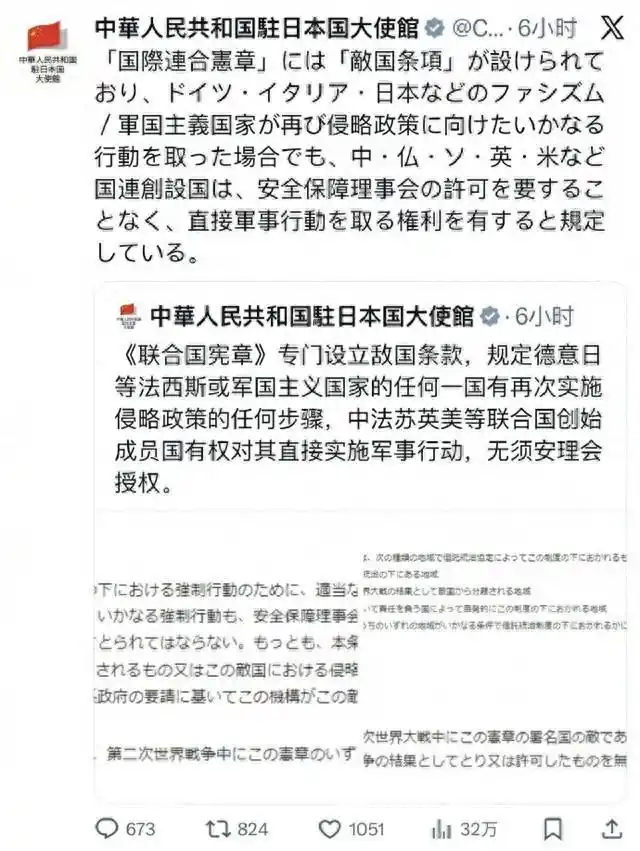 据环球时报消息,11月21日,中国驻日大使馆在社交平台X用中日双语发帖: