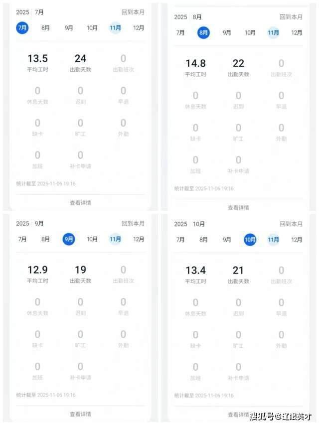 “我们怎么也想不到他会加班到这种程度。”孙女士痛心地说,她赶到无锡后曾登录小乐的钉钉账号,无意间发现,小乐2025年7-10月的日均工时均在13小时左右,8月甚至达到14.8小时。“我弟他们公司上午是9点上班,下午6点下班,但加班是常态。”孙女士说,小乐近期每天的下班时间多在深夜11点左右,平均每天加班四五个小时。