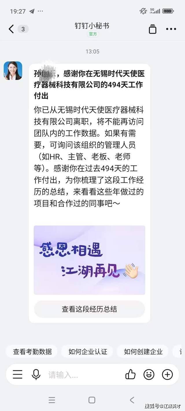 孙女士说,无法看到监控资料弄清致伤原因,警方已初步排除上下班途中或出租屋内受伤,公司方面相关负责人依然认为小乐是自行摔伤。11月8日上午10时50分小乐去世,仅仅两小时后就发现小乐已与单位呈离职状态。孙女士提供的小乐工作账号11月8日13时05分的提示消息称:孙某乐,感谢你在无锡时代天使医疗器械科技有限公司的494天工作付出,你已从无锡时代天使医疗器械科技有限公司离职,将不能再访问团队内的工作数据……