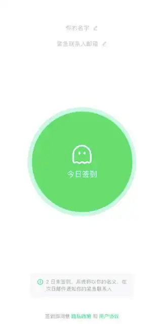 从功能上看,“死了么”App十分简单直接:只需填写用户姓名与紧急联系人邮箱,每天打开应用完成签到,后台自动监测状态。系统有一个异常未签到自动通知的功能,如果用户连续2日没有在应用内签到,系统将于次日自动发送邮件通知紧急联系人。